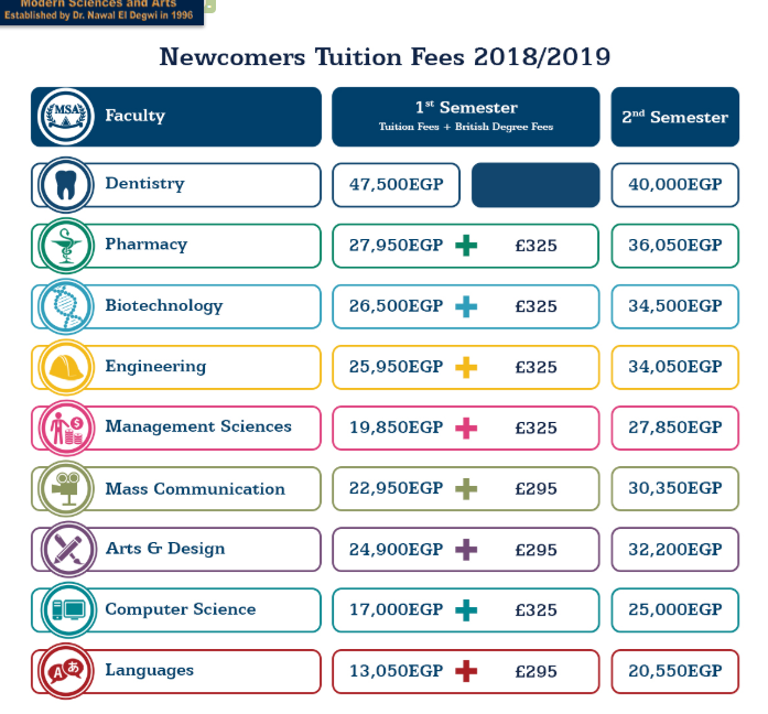 تنسيق ومصاريف جامعة أكتوبر للعلوم الحديثة والآداب Msa 2020 2019